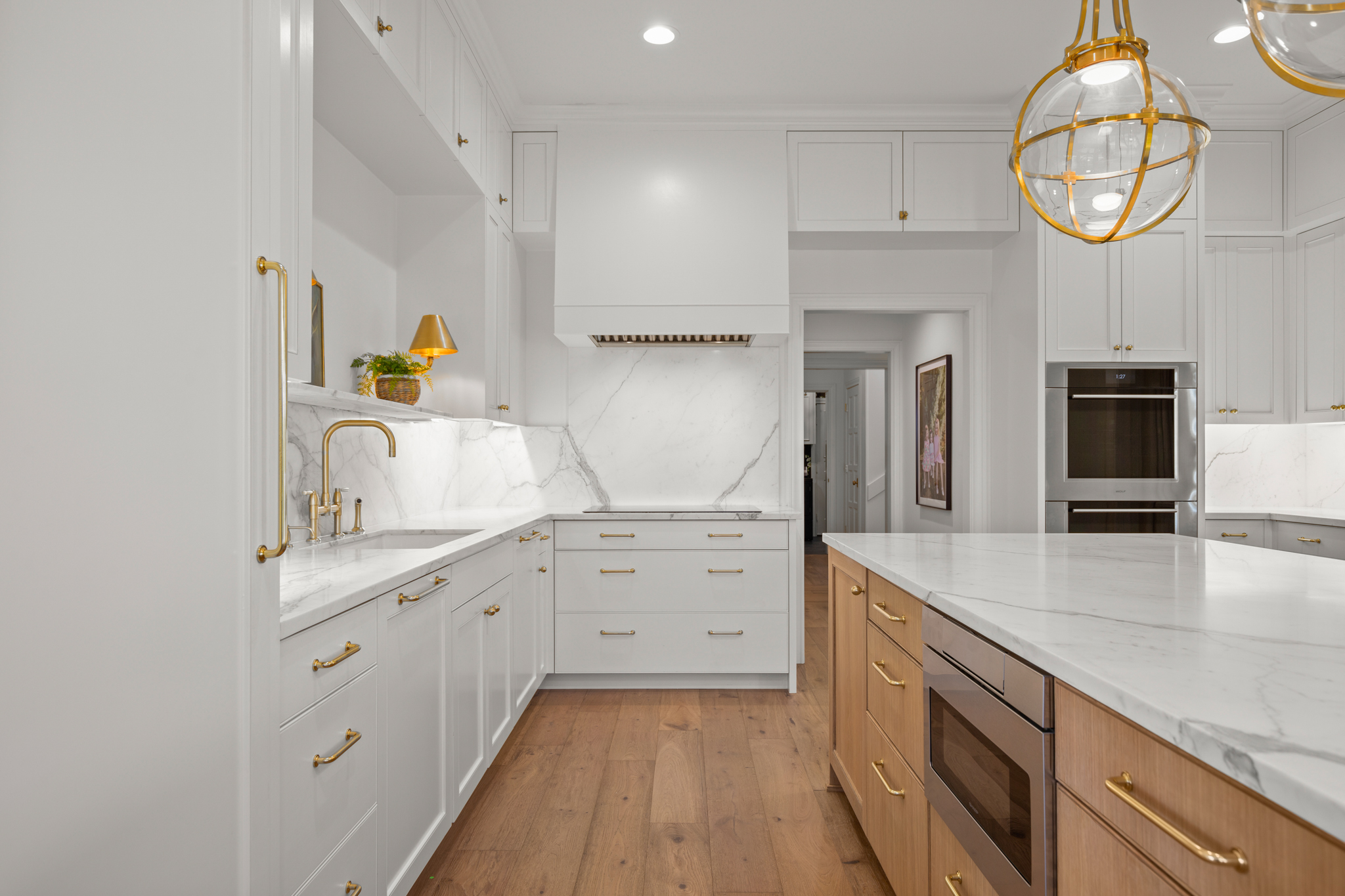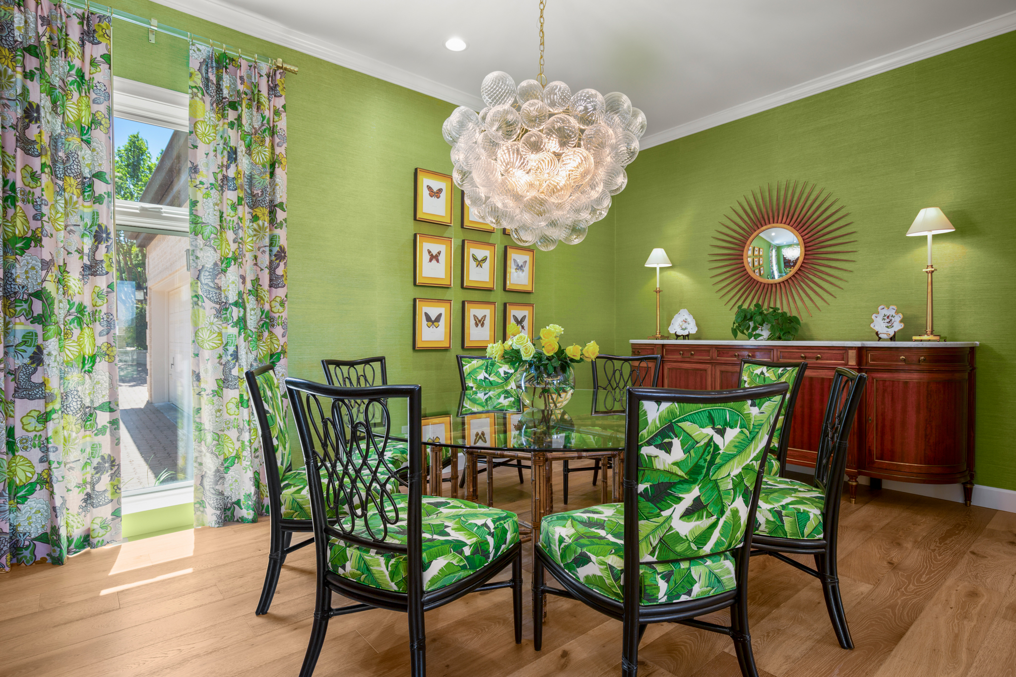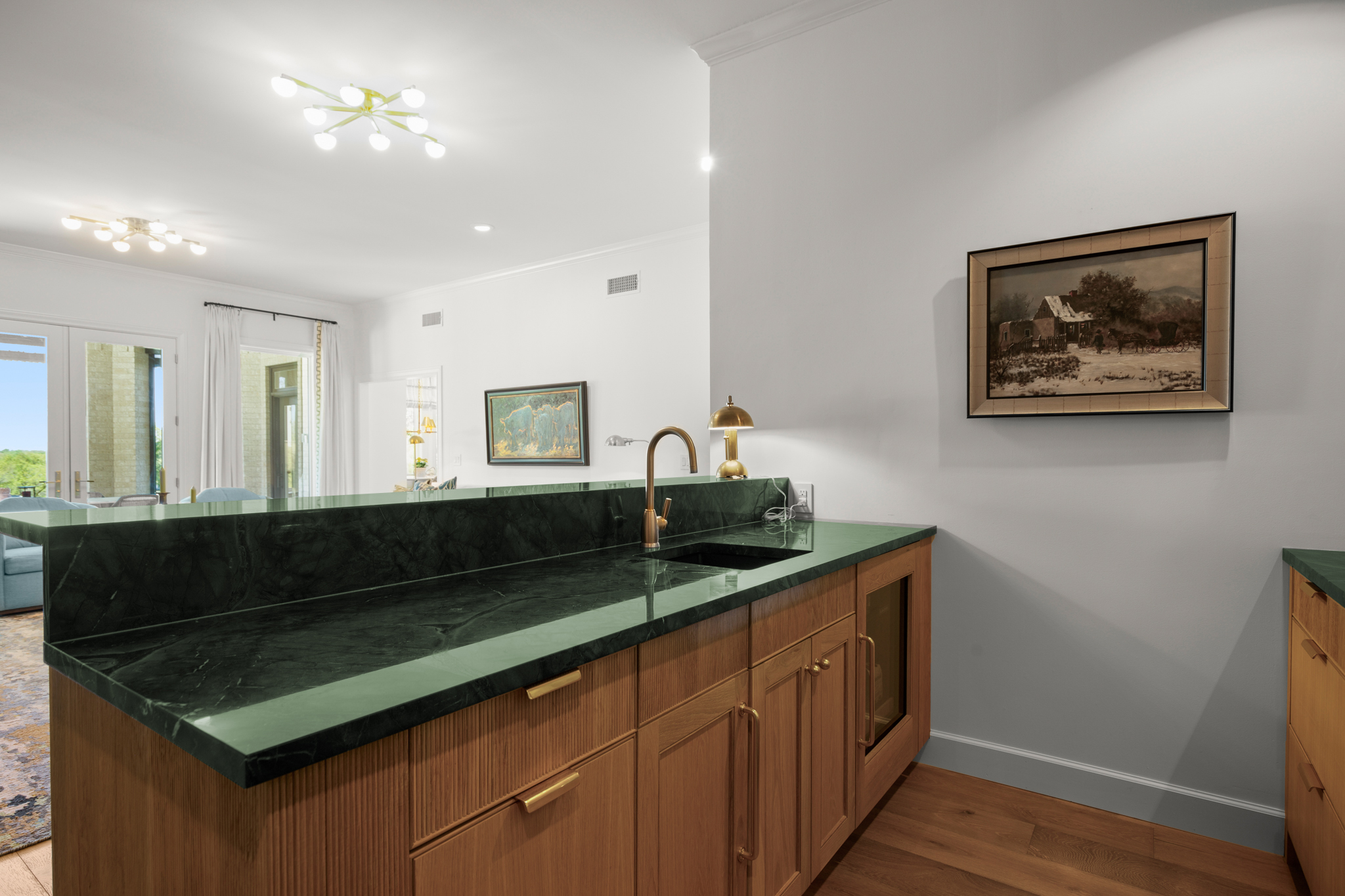 Outside, the impressive driveway leads to a spacious two-car and golf cart garage, along with an attached workshop and garden room. The oasis-like pool is surrounded by lush greenery and opulent oak trees that offer additional privacy and natural ambience. Absolutely brimming with old-world glamour and sophistication with a modern twist, this home is sure to transport you to your own personal paradise!